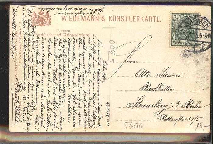 41509722 Barmen Wuppertal Stadthalle Kriegerdenkmal KatCode 11110005124000
