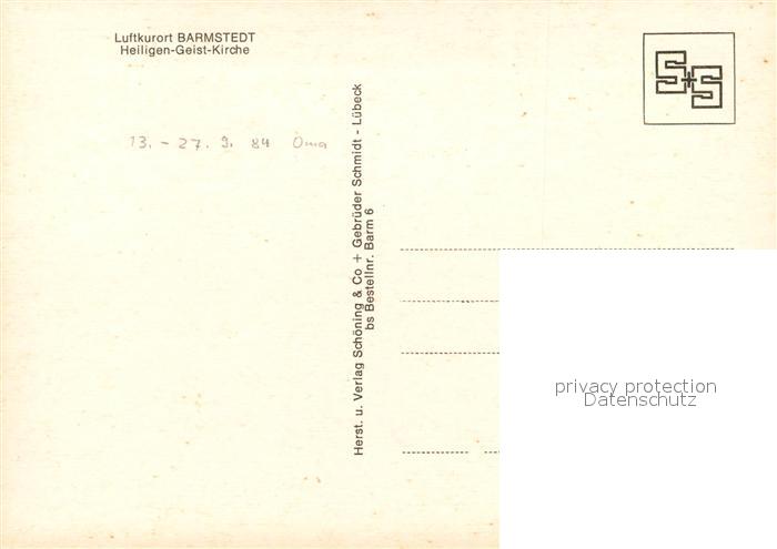 73241056 Barmstedt Heiligen Geist Kirche postalisch nicht gelaufen Erhaltung siehe scans [KathaD81] KatCode: 11110001056002