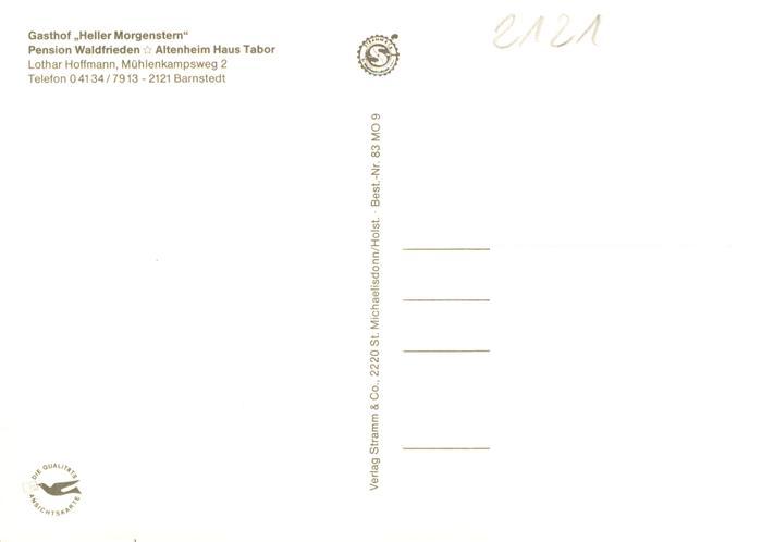 73893600 Barnstedt Lueneburger Heide Gasthof Heller Morgenstern Pension Waldfrieden Altenheim Haus Tabor postalisch nicht gelaufen Erhaltung siehe scans [WerneD78] KatCode: 11110003355006