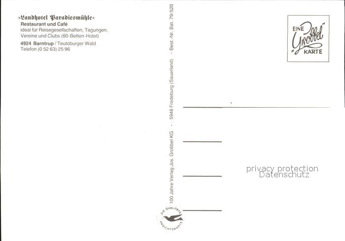 72415734 Barntrup Landhotel Paradiesmuehle Restaurant Cafe postalisch nicht gelaufen Erhaltung siehe scans KatCode: 11110005766012
