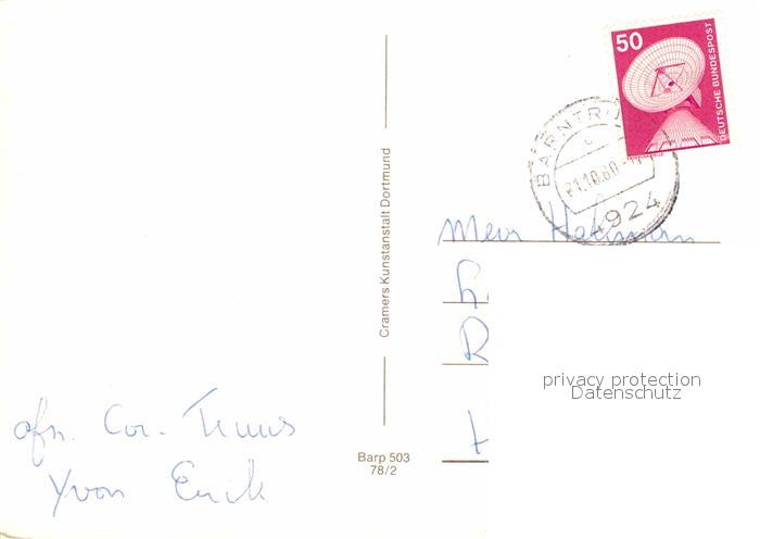 72739051 alte Postkarte Barntrup Landschaftspanorama Untere Strasse Rathaus Stadtpark postalisch gelaufen Erhaltung siehe scans [FriedD77] KatCode: 11110005766012