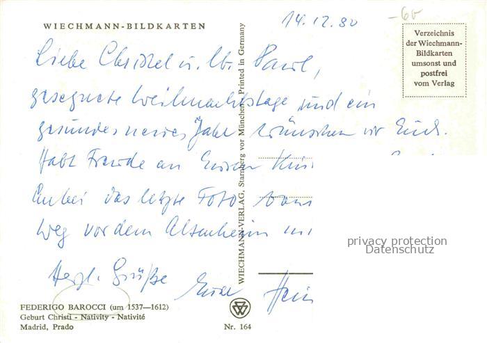 74150596 BAROCCI Frederigo (1537-1612) Kuenstlerkarte Geburt Christi postalisch nicht gelaufen Erhaltung siehe scans [IrynaD87] KatCode: 22240000003200