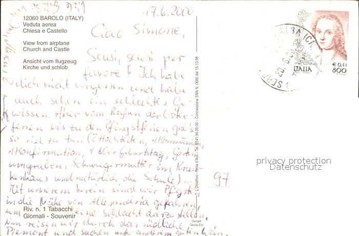 old postcard Barolo Fliegeraufnahme chiesa castello postalisch gelaufen Erhaltung siehe scans