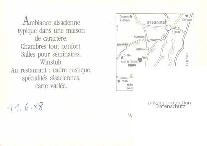 12849897 Barr Bas-Rhin Hotel-Restaurant Le Brochet postalisch nicht gelaufen Keine Postkarte (siehe scan) Erhaltung siehe scans [PaolaD17] KatCode: 11170067567021
