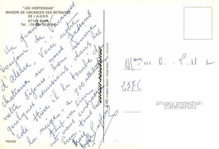 12888865 Barr Bas-Rhin Les Hortensias Maison de Vacances postalisch nicht gelaufen Erhaltung siehe scans [AndreD76] KatCode: 11170067567021