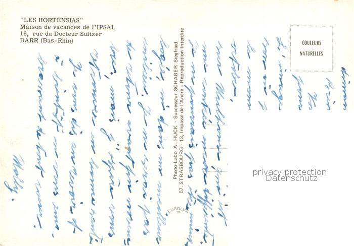 13617498 Barr Bas-Rhin Les Hortensias Maison de vacandes de l’Ipsal postalisch nicht gelaufen Erhaltung siehe scans [WerneD78] Wern Katcode 11170067567021