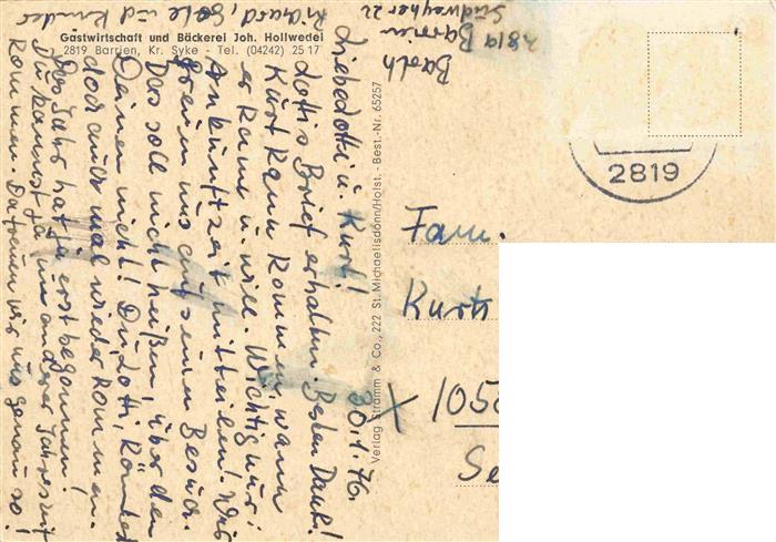 73974895 alte Postkarte Barrien Syke Gastwirtschaft Hollwedel Gastraum Kirche Muehlrad postalisch gelaufen Erhaltung siehe scans [WerneD78] KatCode: 11110003251041