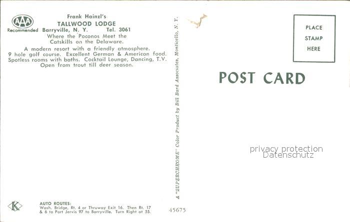 71969276 Barryville Tallwood Lodge postalisch nicht gelaufen Erhaltung siehe scans KatCode: 14140340000000