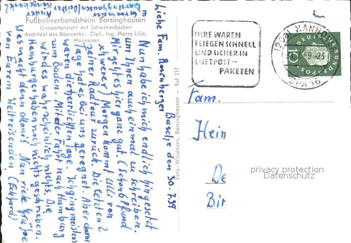 72467728 alte Postkarte Barsinghausen Fussballverbandsheim Schwimmbecken postalisch gelaufen Erhaltung siehe scans KatCode: 11110003241002