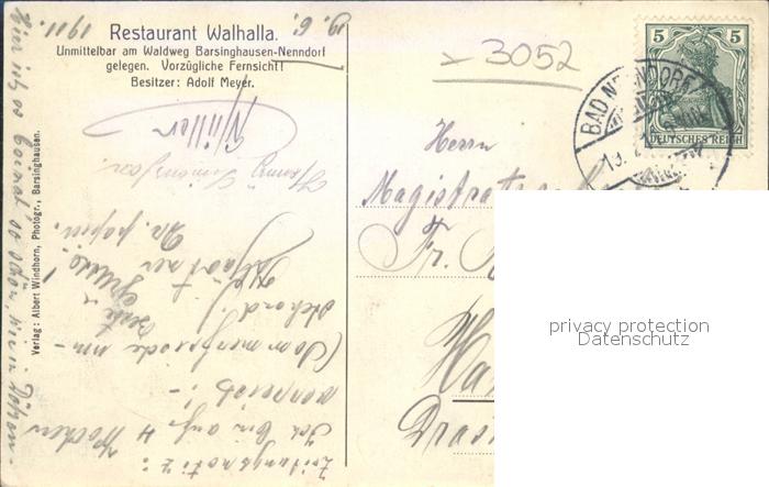 42121116 alte Postkarte Barsinghausen Restaurant Walhalla postalisch gelaufen Erhaltung siehe scans KatCode: 11110003241002