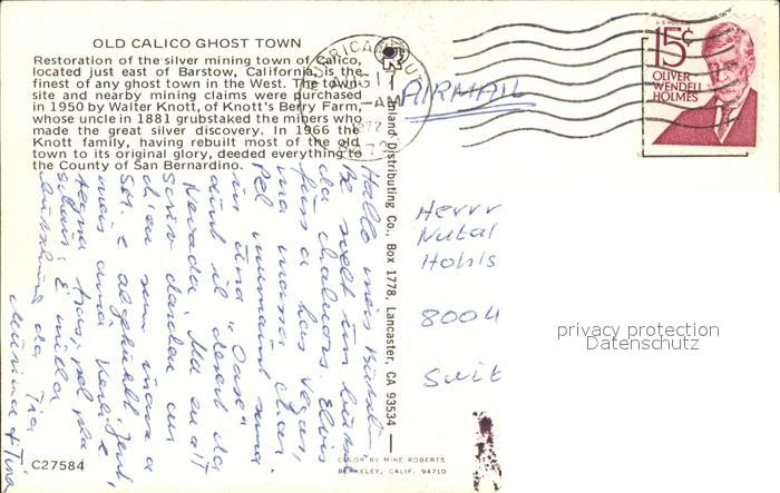72582802 old postcard Barstow California Old Calico Ghost Town postalisch gelaufen Erhaltung siehe scans [LiesaD40] KatCode: 14140050000000