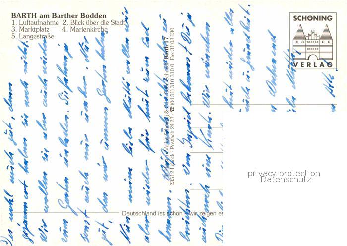 72696481 Barth Barther Bodden Fliegeraufnahme Marktplatz Kirche Langestrasse postalisch nicht gelaufen Erhaltung siehe scans [FriedD77] KatCode: 11110013057009