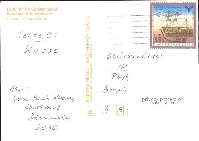 72264397 alte Postkarte Barth Fangelturm mit Schulsternwarte postalisch gelaufen Erhaltung siehe scans KatCode: 11110013057009