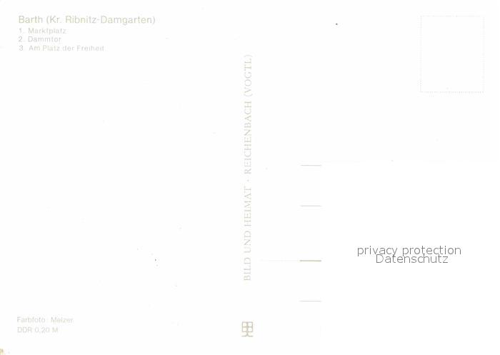 72617139 Barth Marktplatz Kirche Dammtor Platz der Freiheit postalisch nicht gelaufen Erhaltung siehe scans [WerneD78] KatCode: 11110013057009