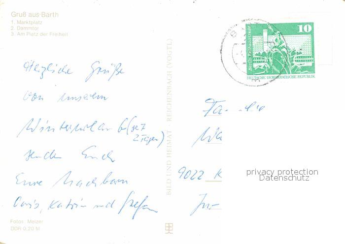 72617122 alte Postkarte Barth Marktplatz Kirche Dammtor Platz der Freiheit postalisch gelaufen Erhaltung siehe scans [WerneD78] KatCode: 11110013057009