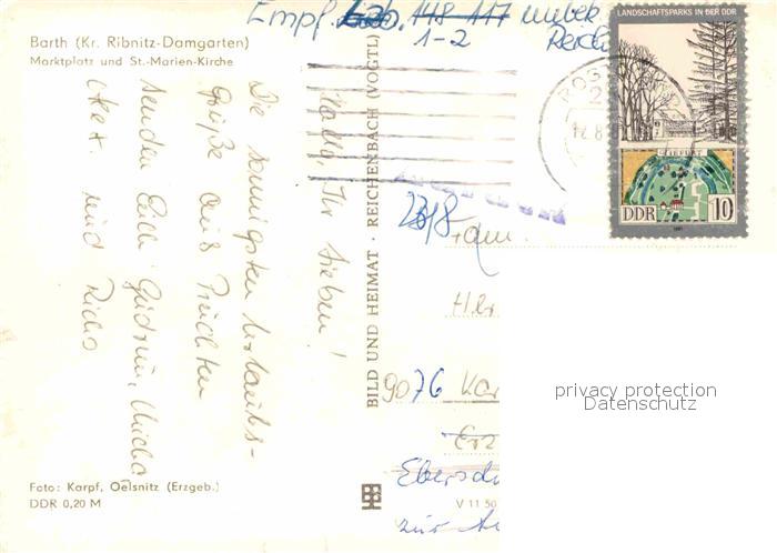 72898664 alte Postkarte Barth Marktplatz St.-Marien-Kirche postalisch gelaufen Erhaltung siehe scans [PaolaD17] KatCode: 11110013057009