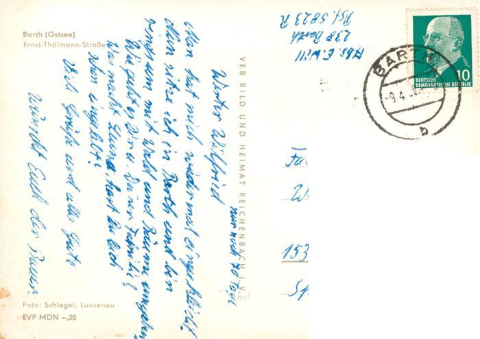 73886662 alte Postkarte Barth Osteebad Ernst Thaelmann Strasse postalisch gelaufen Erhaltung siehe scans [FriedD77] KatCode: 11110013057009