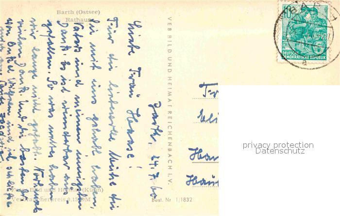 72822447 alte Postkarte Barth Rathaus postalisch gelaufen Erhaltung siehe scans [FriedD77] KatCode: 11110013057009