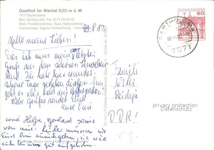 72328600 alte Postkarte Bartholomae Gasthof Wental postalisch gelaufen Erhaltung siehe scans KatCode: 11110008136007