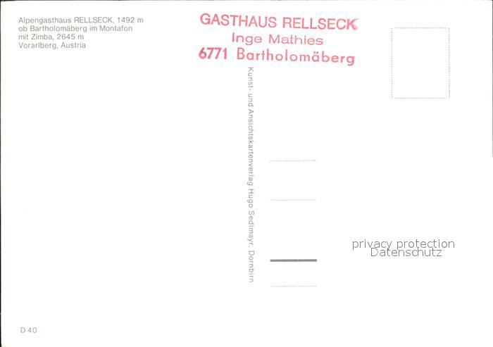 72421552 Bartholomaeberg Vorarlberg Alpengasthaus Rellseck mit Zimba postalisch nicht gelaufen Erhaltung siehe scans KatCode: 11390341080101