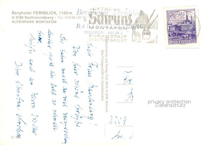 13188388 alte Postkarte Bartholomaeberg Vorarlberg Berghotel Fernblick postalisch gelaufen Erhaltung siehe scans [PaolaD17] KatCode: 11390341080101