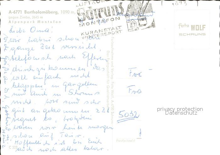 72438210 alte Postkarte Bartholomaeberg Vorarlberg Blick gegen Zimba postalisch gelaufen Erhaltung siehe scans KatCode: 11390341080101