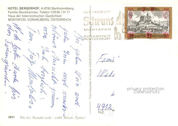 73324530 alte Postkarte Bartholomaeberg Vorarlberg Hotel Bergerhof Terrasse Gaststube postalisch gelaufen Erhaltung siehe scans [WerneD78] KatCode: 11390341080101
