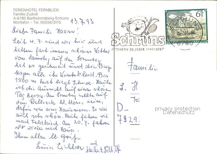 71989242 alte Postkarte Bartholomaeberg Vorarlberg Hotel Fernblick Schruns postalisch gelaufen Erhaltung siehe scans KatCode: 11390341080101
