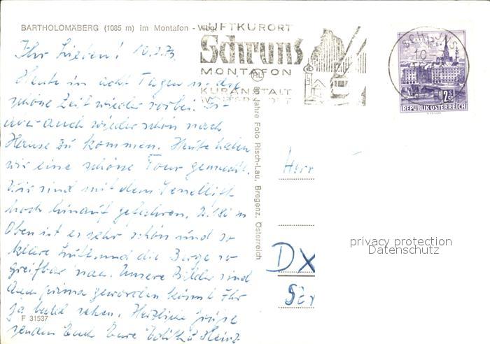 72438707 alte Postkarte Bartholomaeberg Vorarlberg Montafon postalisch gelaufen Erhaltung siehe scans KatCode: 11390341080101