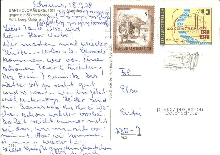 72543355 alte Postkarte Bartholomaeberg Vorarlberg Panorama mit Silvrettabergen postalisch gelaufen Erhaltung siehe scans [WerneD78 kv016box] KatCode: 11390341080101