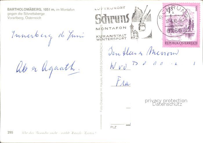 71981943 alte Postkarte Bartholomaeberg Vorarlberg Silvrettaberge postalisch gelaufen Erhaltung siehe scans KatCode: 11390341080101