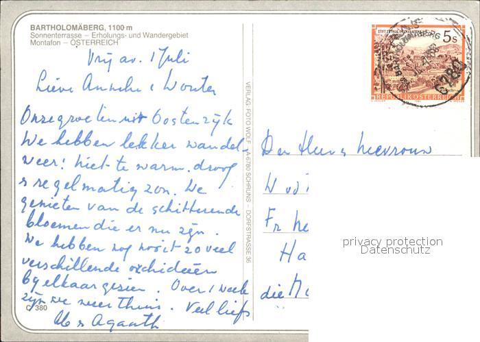 71981942 alte Postkarte Bartholomaeberg Vorarlberg postalisch gelaufen Erhaltung siehe scans KatCode: 11390341080101