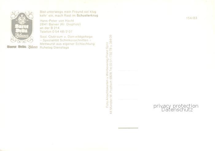 73324412 Barver Gaststaette Restaurant Schusterkrug Wildgehege postalisch nicht gelaufen Erhaltung siehe scans [FriedD77] KatCode: 11110003251006