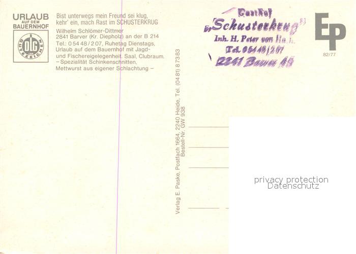 73725592 Barver Urlaub auf dem Bauernhof Gasthof Schusterkrug postalisch nicht gelaufen Erhaltung siehe scans [FriedD77] KatCode: 11110003251006