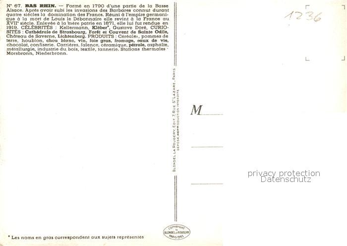 13592344 Bas Rhin Region Carte de la région Basse Alsace Strasbourg Kleber Cathedrale postalisch nicht gelaufen Erhaltung siehe scans [FriedD77] Frie Katcode 11170067867482