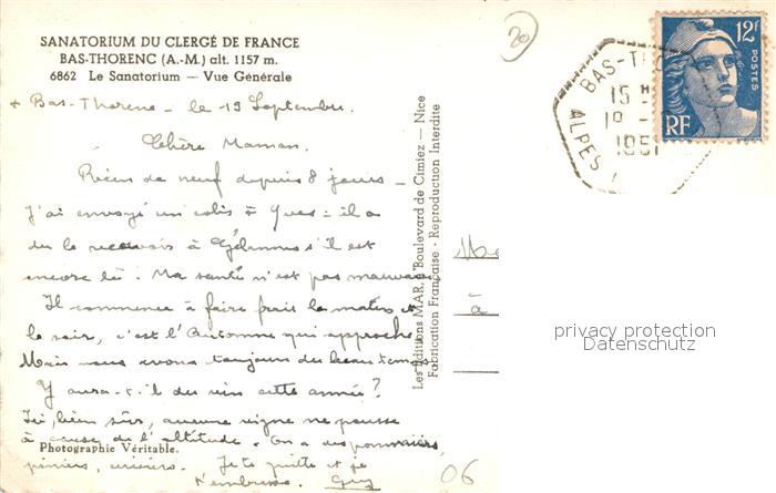 13493004 carte postale Bas Thorenc Sanatorium du Clergé de France postalisch gelaufen Erhaltung siehe scans [FriedD77] KatCode: 11170006106003