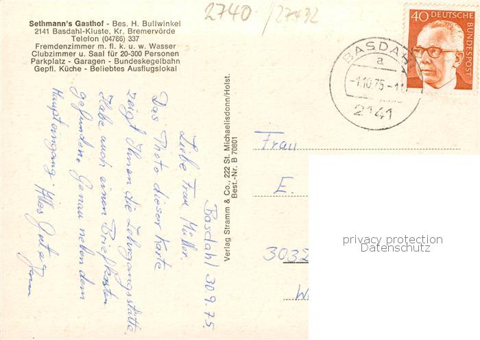 73864936 Basdahl Kluste Sethmanns Gasthof Gartenterrasse Gaststube postalisch gelaufen Erhaltung siehe scans [WerneD78] alte Postkarte Wern Katcode 11110003357004