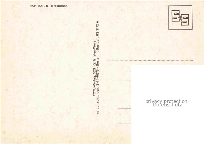 74037833 Basdorf Edersee Korbach Fliegeraufnahme postalisch nicht gelaufen Erhaltung siehe scans [WerneD78] KatCode: 11110006635019