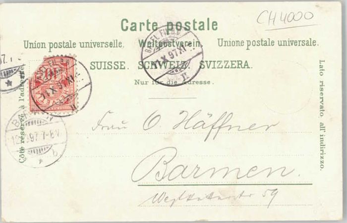 10543590 alte Postkarte Basel BS Basel Denkmal der Satd Strassburg postalisch gelaufen KatCode: 11470050110786