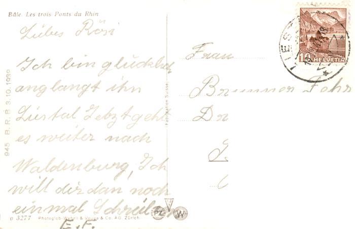13900753 alte Postkarte Basel BS Die drei Rheinbruecken postalisch gelaufen Erhaltung siehe scans [WerneD78] KatCode: 11470050110786