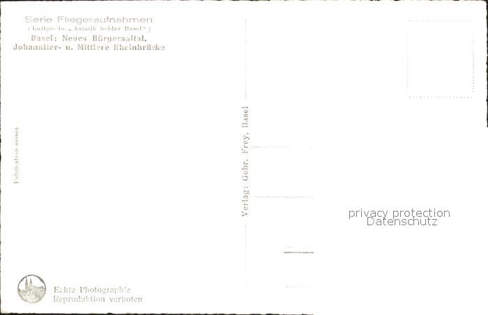 11738998 Basel BS Fliegeraufnahme Neues Buergerspital Johanniter- u. Mittlere Rheinbruecke postalisch nicht gelaufen Erhaltung siehe scans KatCode: 11470050110786