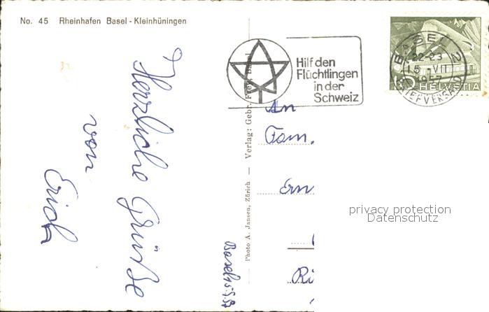11739051 alte Postkarte Basel BS Fliegeraufnahme Rheinhafen Kleinhueningen postalisch gelaufen Erhaltung siehe scans KatCode: 11470050110786