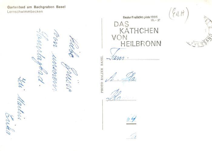 13919325 alte Postkarte Basel BS Gartenbad am Bachgraben Lernschwimmbecken postalisch gelaufen Erhaltung siehe scans [WerneD78] KatCode: 11470050110786