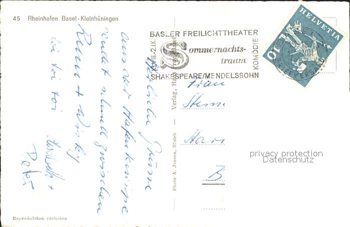 11739091 alte Postkarte Basel BS Kleinhueninger Rheinhafen Fliegeraufnahme postalisch gelaufen Erhaltung siehe scans KatCode: 11470050110786