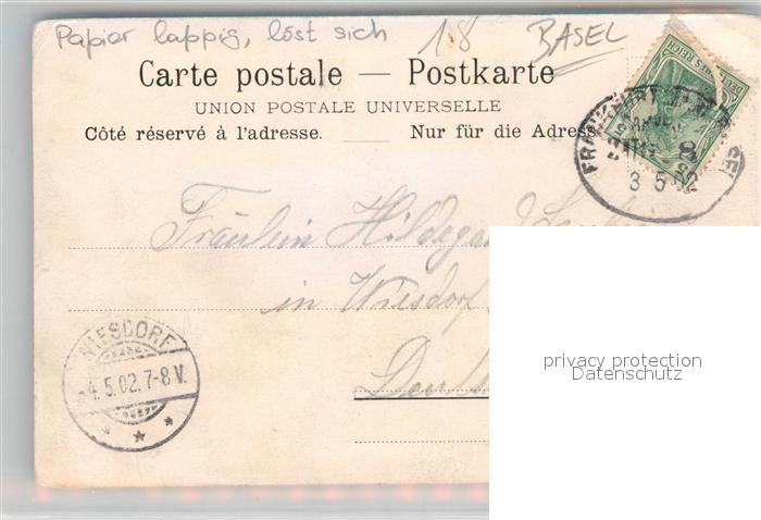 13002874 alte Postkarte Basel BS Maedchen mit Fahne Kirche Kuenstlerkarte postalisch gelaufen Bahnpost Erhaltung siehe scans [FriedD77] KatCode: 11470050110786