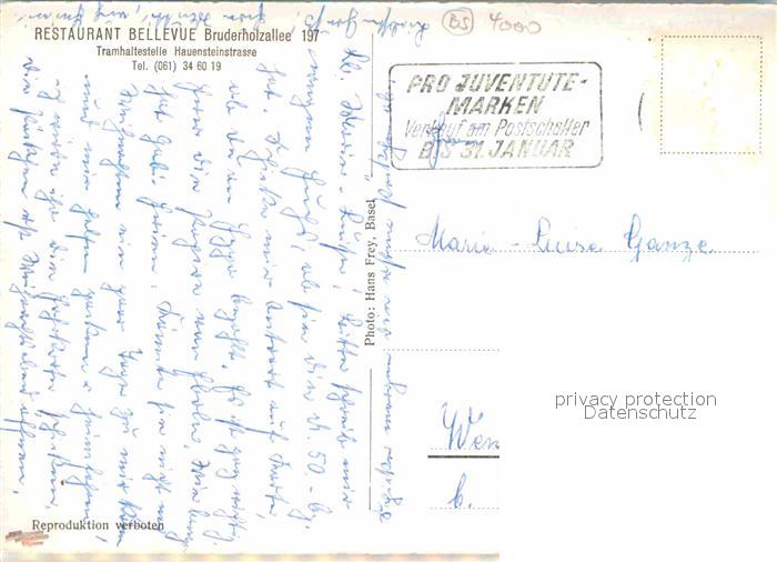 12729268 alte Postkarte Basel BS Restaurant Bellevue Gastraum postalisch gelaufen Erhaltung siehe scans [WerneD78] KatCode: 11470050110786