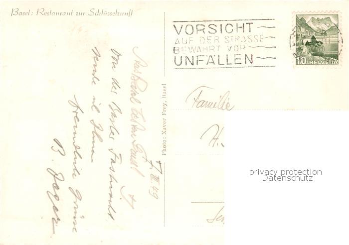 13865124 alte Postkarte Basel BS Restaurant zur Schluesselzunft postalisch gelaufen Erhaltung siehe scans [FriedD77] KatCode: 11470050110786