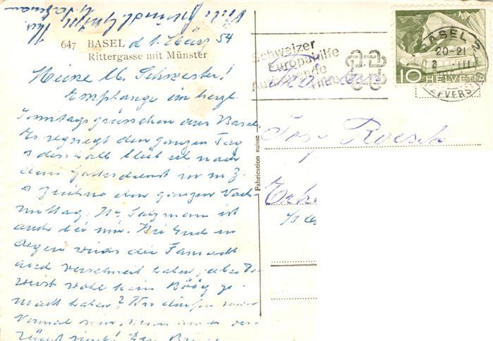 13901676 alte Postkarte Basel BS Rittergasse mit Muenster postalisch gelaufen Erhaltung siehe scans [WerneD78] KatCode: 11470050110786