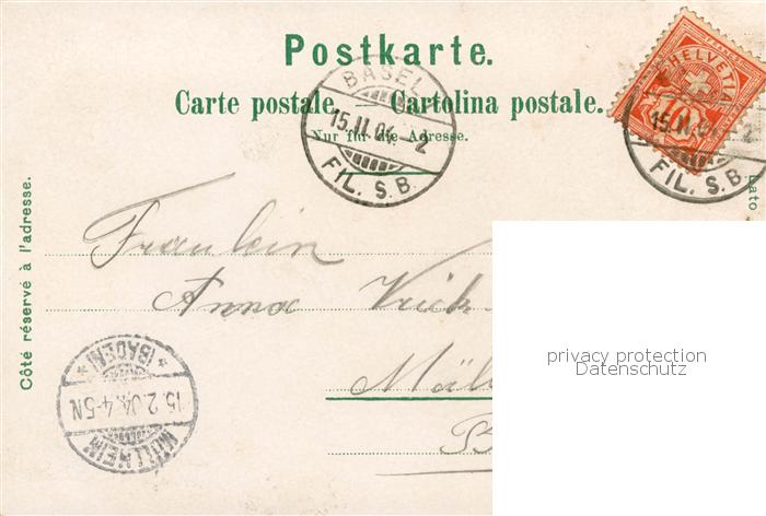 13794240 alte Postkarte Basel BS St. Jakobdenkmal – Rathaus – Rheinbruecke postalisch gelaufen Erhaltung siehe scans [LiesaD40] KatCode: 11470050110786