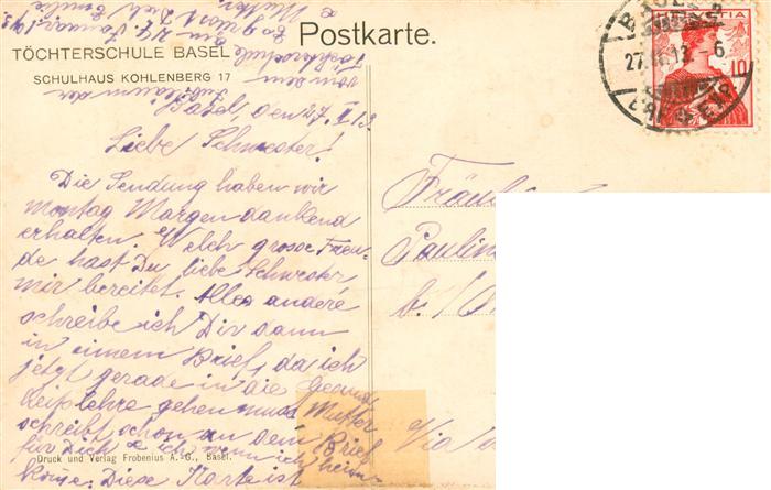 13863743 alte Postkarte Basel BS Toechterschule Schulhaus Kohlenberg 17 postalisch gelaufen Erhaltung siehe scans [FriedD77] KatCode: 11470050110786